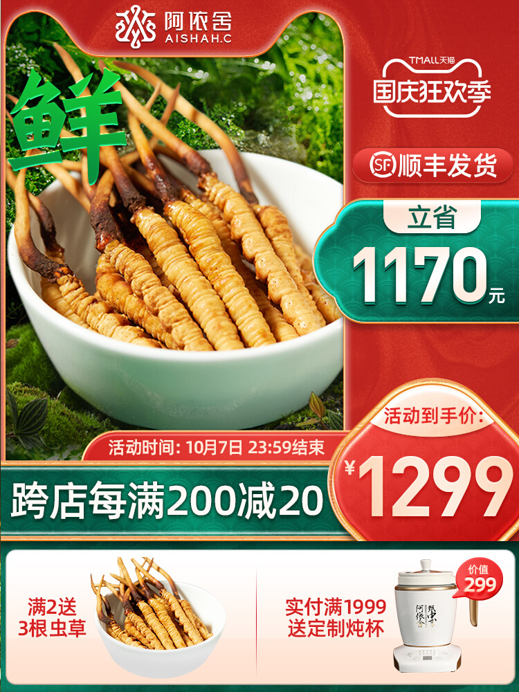 阿依舍2022新鲜冬虫夏草正品鲜虫草30根起礼盒装鲜草官方旗舰店