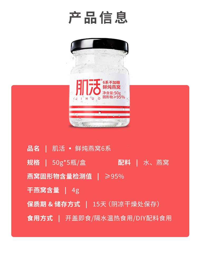 肌活鲜炖燕窝30瓶月套餐 6系50g无糖/冰糖即食燕窝孕妇滋补品溯源