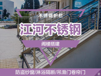 江河不锈钢厂家直销质量保证除去中间费用给您带来较大优惠24小时服务大小工程我们都接,量大从优! 双赢合作,欢迎投标!公司介绍:江河不锈钢有限公司是一家专业从事建材设计生产、销售、安装、维修为一体的综合性公司,在重庆有着多年经验,业内有良好口碑,质优...