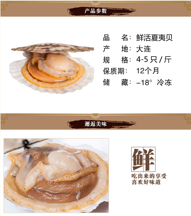 【顺丰冷链-多地隔日达】夏威夷贝扇贝大连海鲜海货鲜活大号蒜蓉夏夷贝元贝干贝烧烤超朴