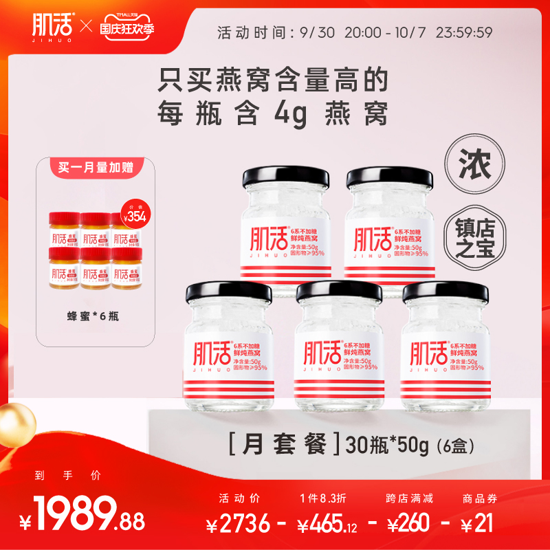 肌活鲜炖燕窝30瓶月套餐 6系50g无糖/冰糖即食燕窝孕妇滋补品溯源