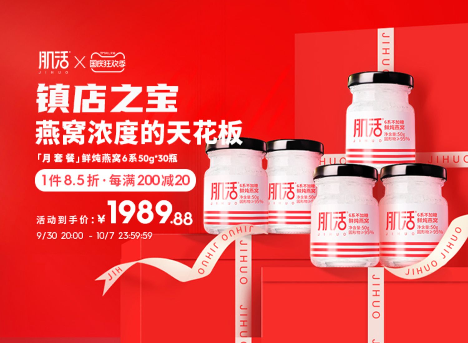 肌活鲜炖燕窝30瓶月套餐 6系50g无糖/冰糖即食燕窝孕妇滋补品溯源