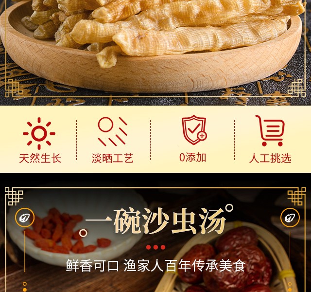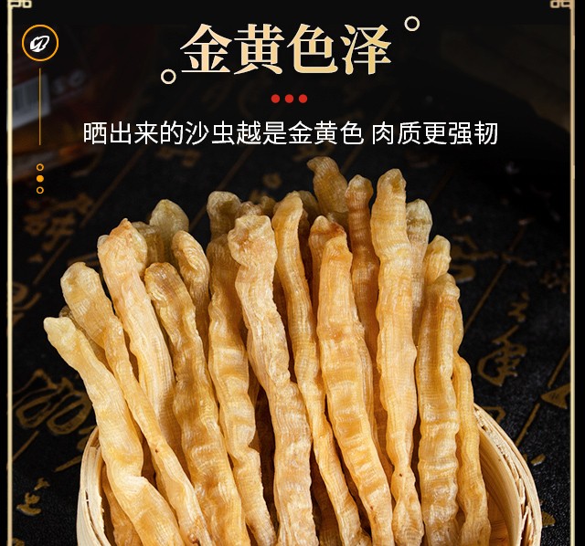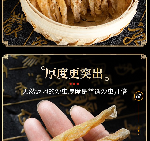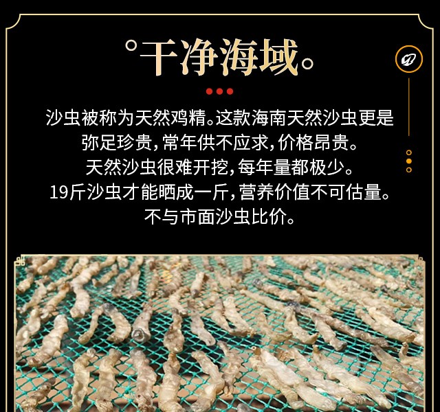 渔爷芝家 天然泥地老沙虫干货 老人小孩日常熬粥炖汤滋补海南岛珍贵厚肉金黄海沙虫 100g