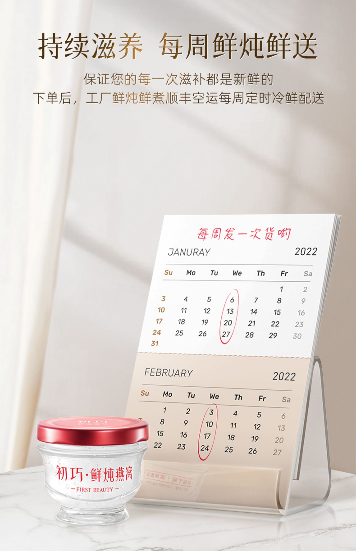 初巧鲜炖燕窝月套餐50g*28瓶孕妇滋补品鲜炖即食营养品礼盒正品